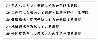 私たちの病院は、2次未満の救急患者さんを受け入れると同時に、基幹病院で急性期の治療を終えた患者さんを受け入れて回復期〜療養期の医療・看護を提供し、安心して自宅療養が出来るようにサポートします。